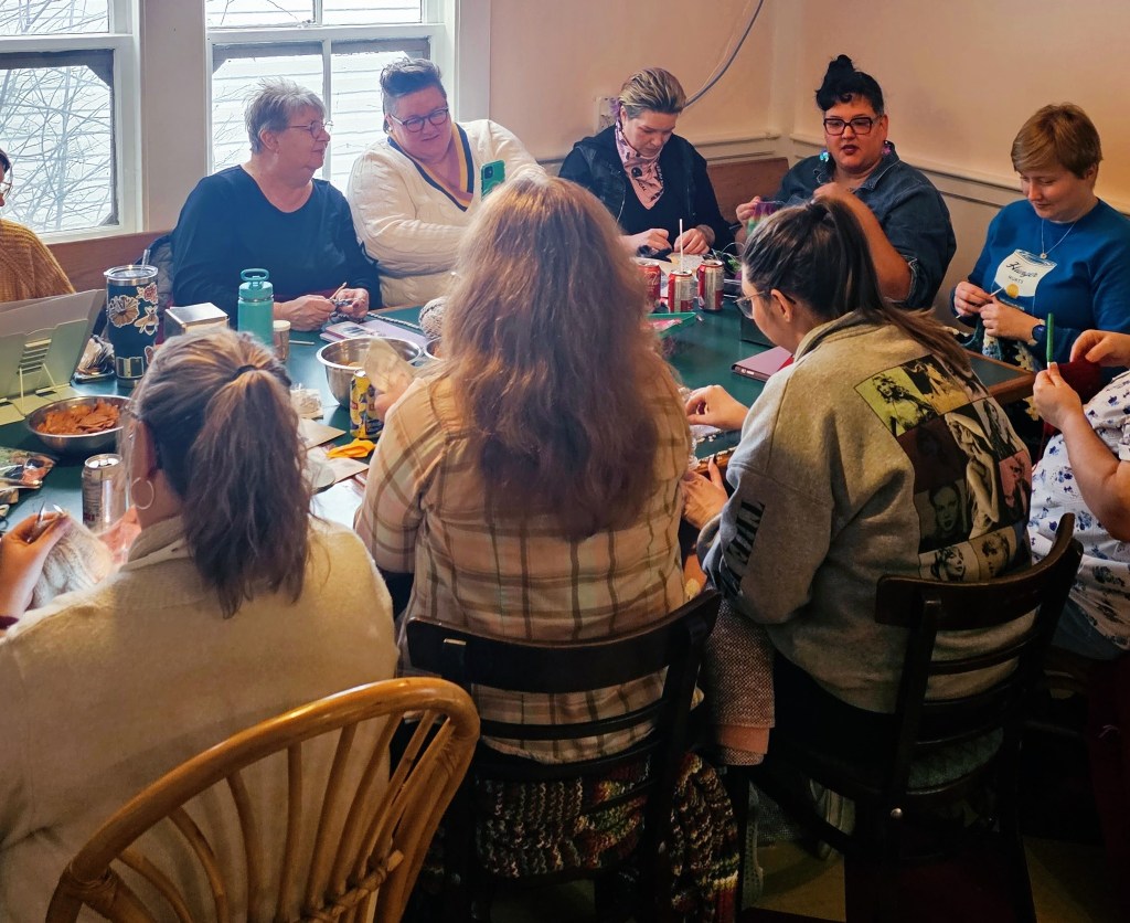 Every week, a rotating cast of locals and visitors gather around the big table with projects in various states of chaos. Someone’s always happy to show you how to cast on, thread a needle, or help decipher some weird dream you had. There’s encouragement, there’s story-swapping, and there’s usually someone accidentally hot-gluing something to the table. No sign-up, no pressure, and Rosefinch Mercantile even sells craft kits if you are worrying about arriving empty-handed.